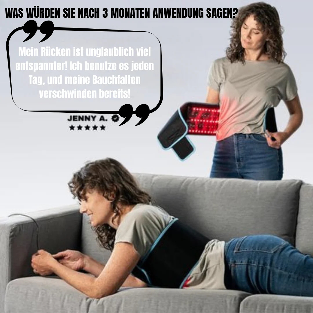 Der Luminora™ Rotlicht-Therapiegürtel nutzt Infrarotlicht, um tief einzudringen, die zelluläre Energieproduktion zu stimulieren und natürliche Heilungsprozesse von innen zu fördern.
